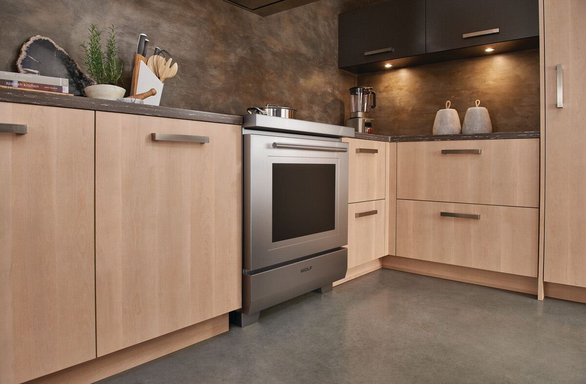 Wolf induction cooktops use powerful electromagnetic technology to deliver instant heat and exact temperature control, all while keeping the cooktop surface cool to the touch. Whether you’re searing, sautéing, or simmering, induction responds faster than gas and is more efficient than traditional electric. Paired with Wolf’s signature convection ovens, you’ll enjoy even heat distribution for baking, roasting, and broiling with professional results every time.