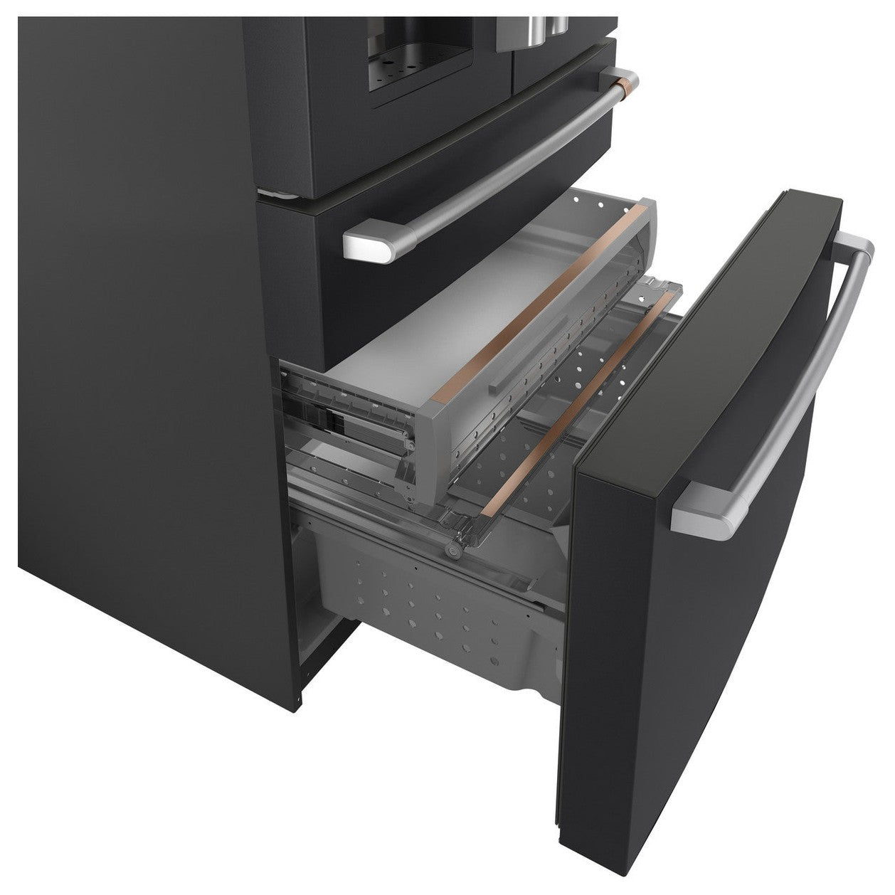 Bring modern convenience and adaptable storage to your kitchen with the Café CVE28DP3ND1 Smart 4-Door French-Door Refrigerator.