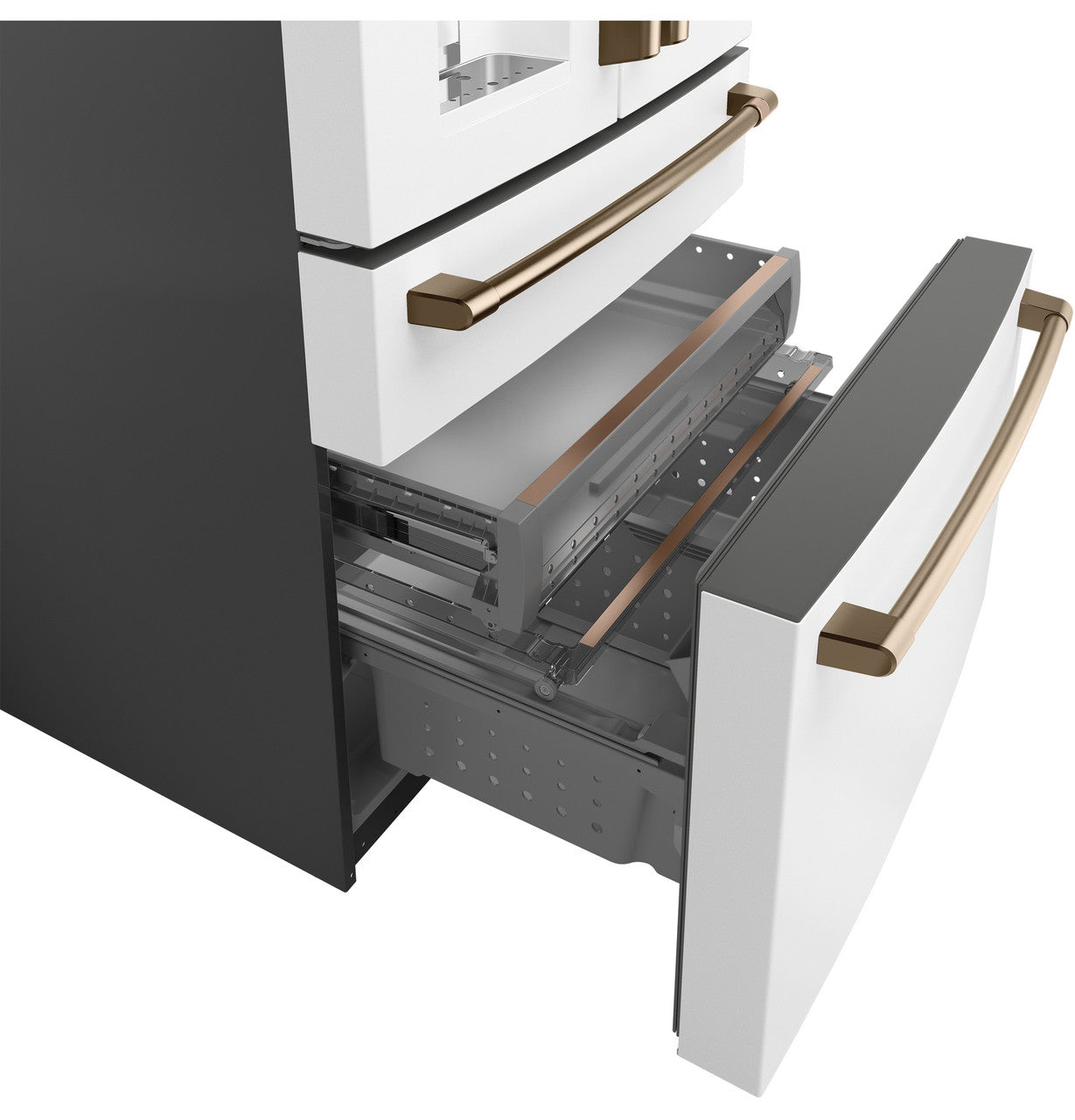 Customize your refrigerator’s look with Café handle kits in Brushed Bronze, Brushed Black, Brushed Copper, Brushed Stainless, Brushed Brass, or Flat Black finishes to match your kitchen décor.
