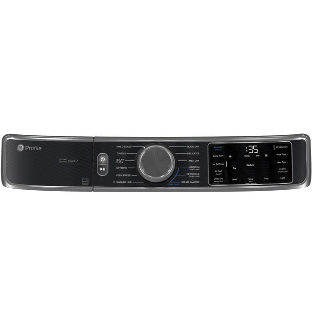 Equipped with Sensor Dry technology, the dryer automatically monitors moisture levels to prevent overdrying and protect fabrics. Steam features help reduce wrinkles and refresh clothes, while the Sanitize cycle provides added confidence by using high heat to help reduce bacteria. Built-in SmartHQ™ WiFi connectivity allows you to monitor cycles, receive alerts, and control settings remotely. Finished in a clean, modern design with a reversible glass door, the PFD95GSPWGN combines power, efficiency, and convenience—available at Coastal Appliance Co.